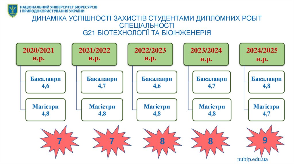 7. Забезпечити якісну підготовку студентів спеціальності Біотехнологія за програмою подвійних дипломів з