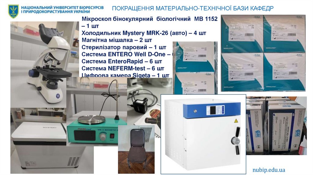 параметрів якості навколишнього середовища та надання рекомендацій щодо відновлення; навчальнонауково-виробничою лабораторією Моніторингу пестицидів у технологіях захисту рослин з визначення