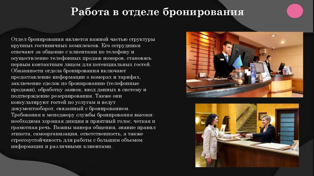 Работа в отделе бронированияОтдел бронирования является важной частью структуры