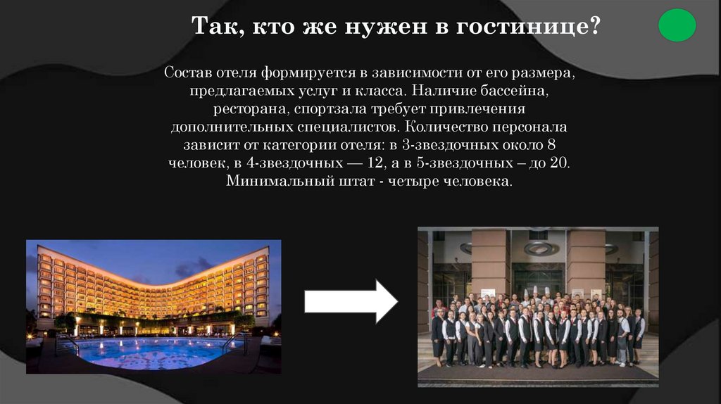 Так, кто же нужен в гостинице?Состав отеля формируется в зависимости от его размера,