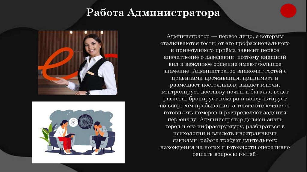 Работа АдминистратораАдминистратор — первое лицо, с которым