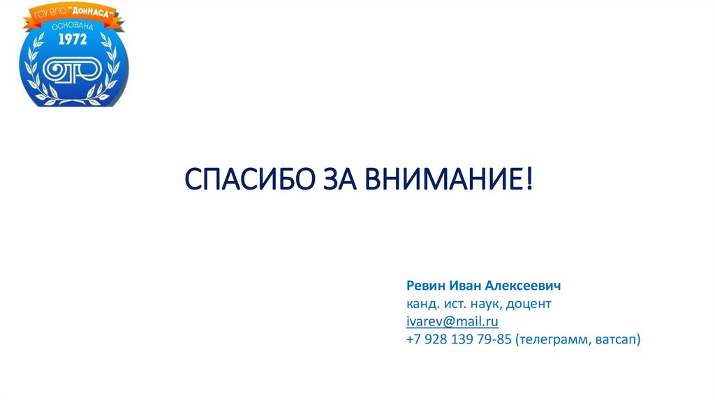 СПАСИБО ЗА ВНИМАНИЕ!Ревин Иван Алексеевич