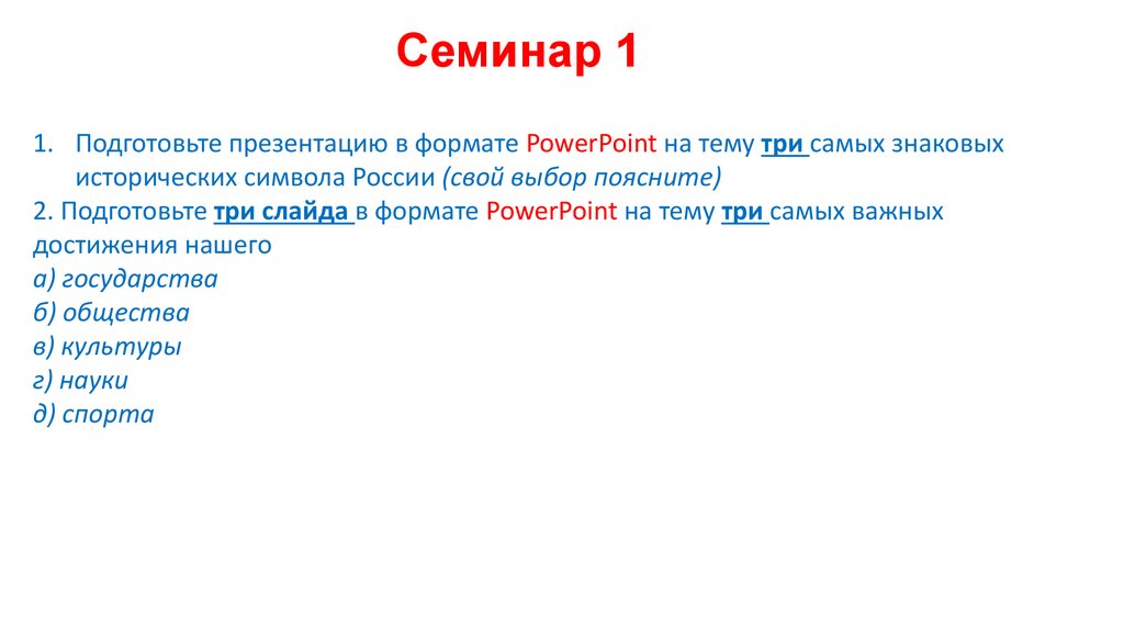 1. Подготовьте презентацию в формате PowerPoint на тему: «Три