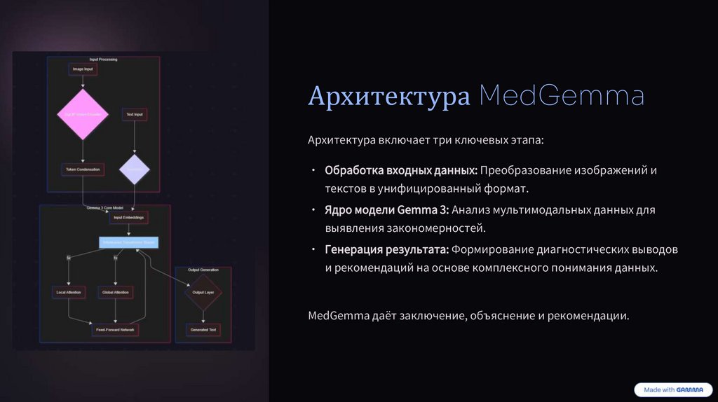 MedGemma предоставляет развернутые медицинские заключения.