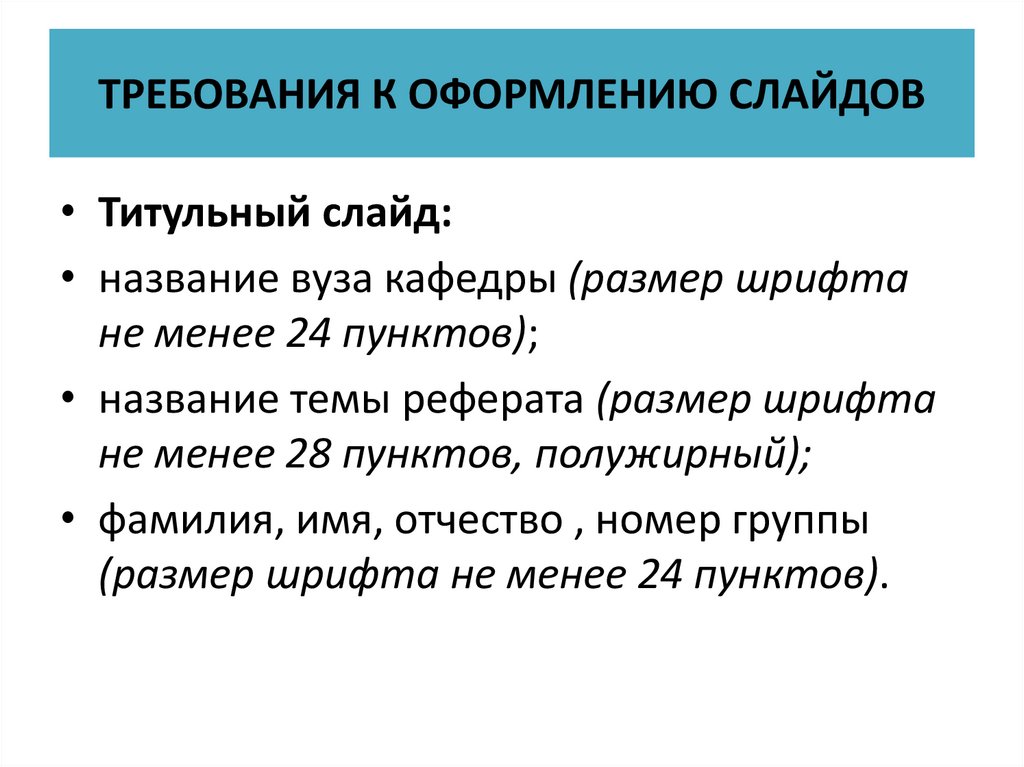 ТРЕБОВАНИЯ К ОФОРМЛЕНИЮ СЛАЙДОВ• Титульный слайд: