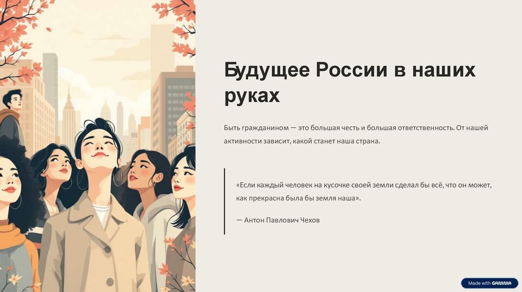Быть гражданином — это большая честь и большая ответственность. От нашей