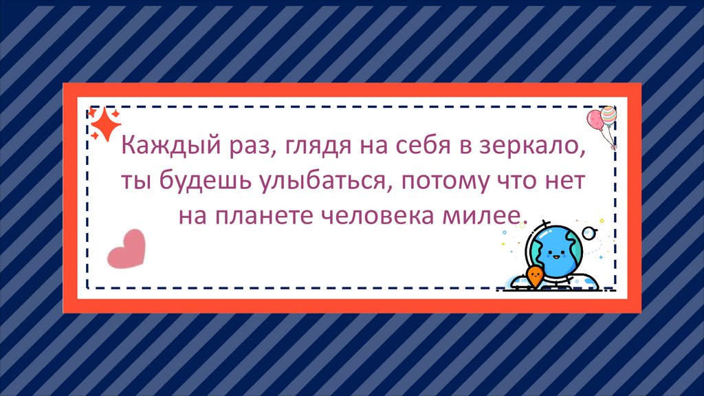Каждый раз, глядя на себя в зеркало,ты будешь улыбаться, потому что нет