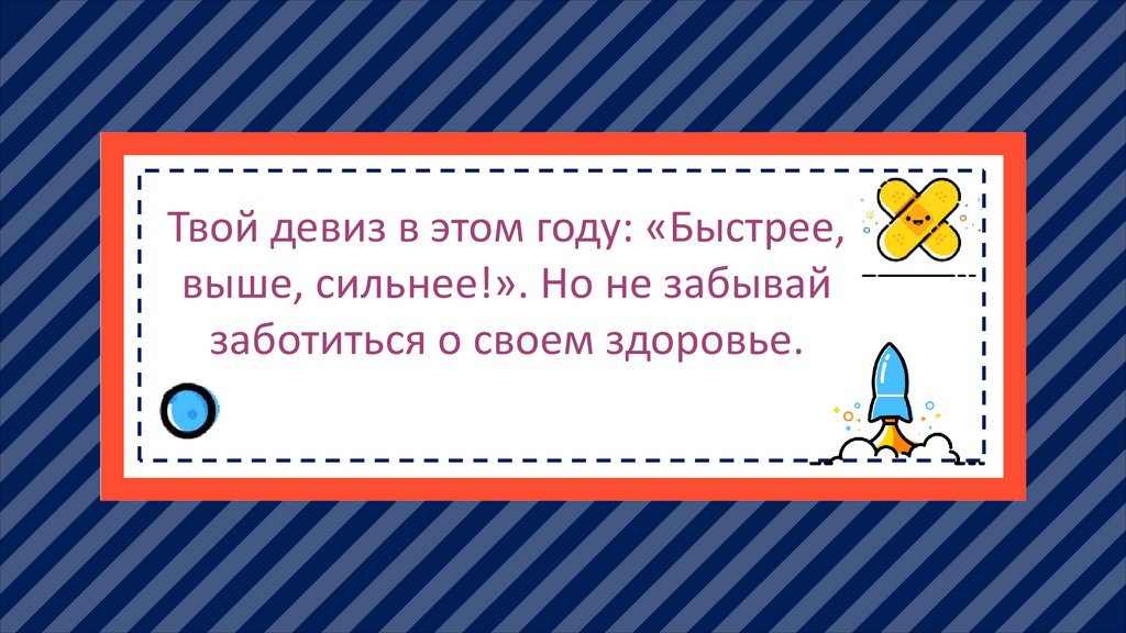 Твой девиз в этом году: «Быстрее,выше, сильнее!». Но не забывай