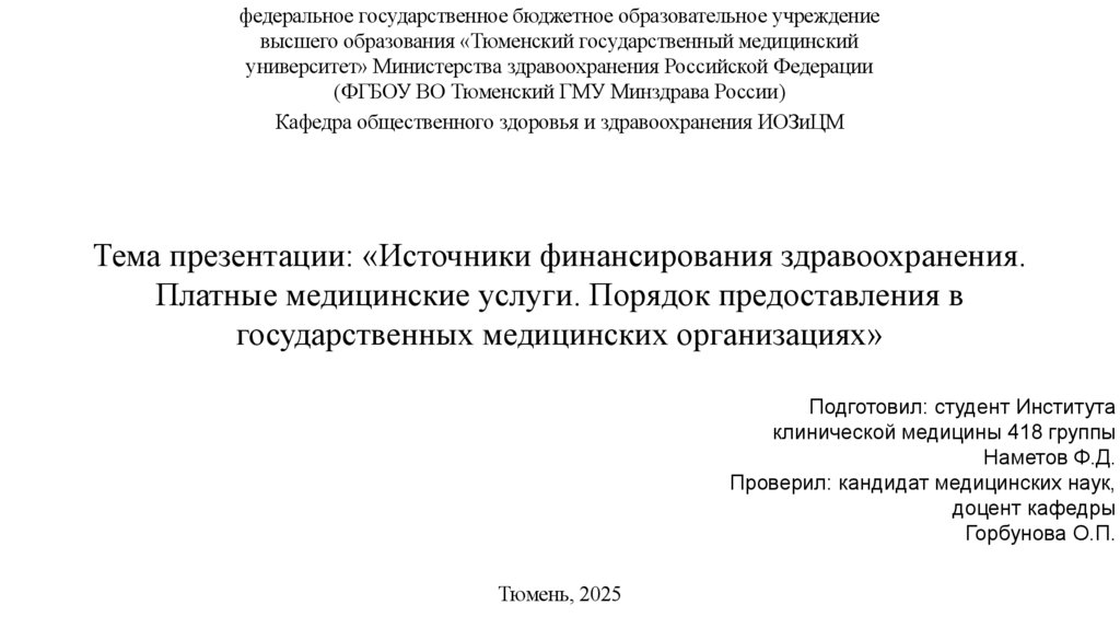федеральное государственное бюджетное образовательное учреждениевысшего образования «Тюменский государственный медицинский