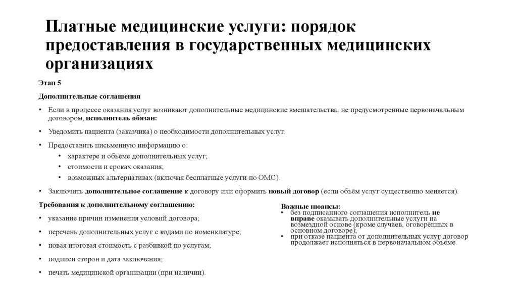• Если в процессе оказания услуг возникают дополнительные медицинские вмешательства, не предусмотренные первоначальным