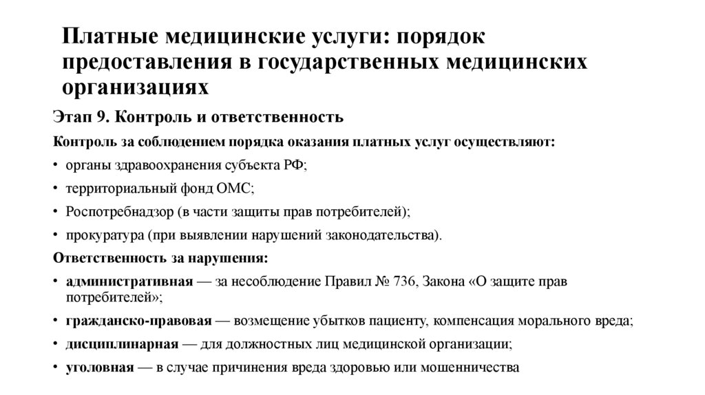 Платные медицинские услуги: порядокпредоставления в государственных медицинских