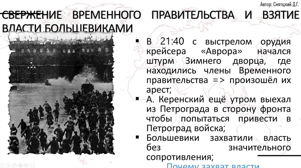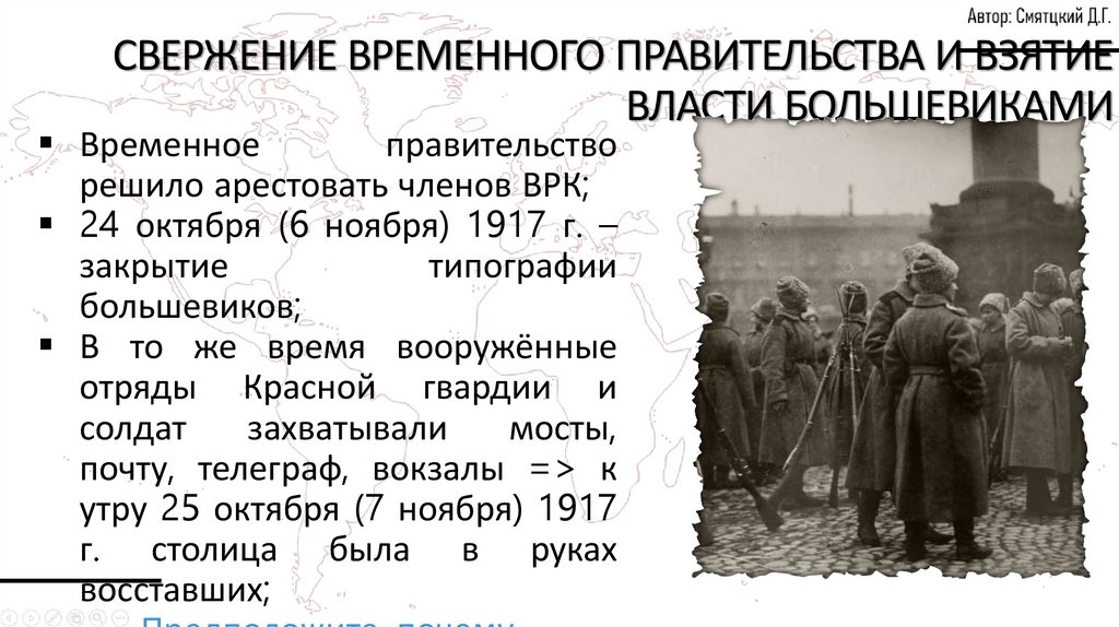 СВЕРЖЕНИЕ ВРЕМЕННОГО ПРАВИТЕЛЬСТВА И ВЗЯТИЕВЛАСТИ БОЛЬШЕВИКАМИ