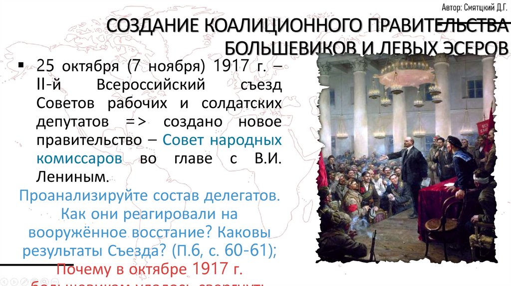 СОЗДАНИЕ КОАЛИЦИОННОГО ПРАВИТЕЛЬСТВАБОЛЬШЕВИКОВ И ЛЕВЫХ ЭСЕРОВ