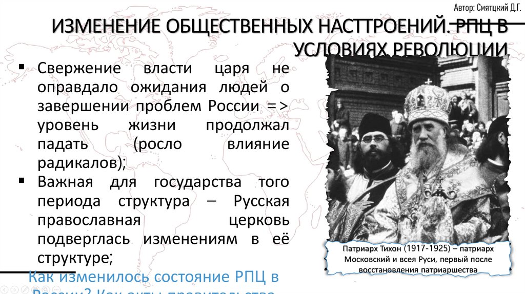 ИЗМЕНЕНИЕ ОБЩЕСТВЕННЫХ НАСТТРОЕНИЙ. РПЦ ВУСЛОВИЯХ РЕВОЛЮЦИИ
