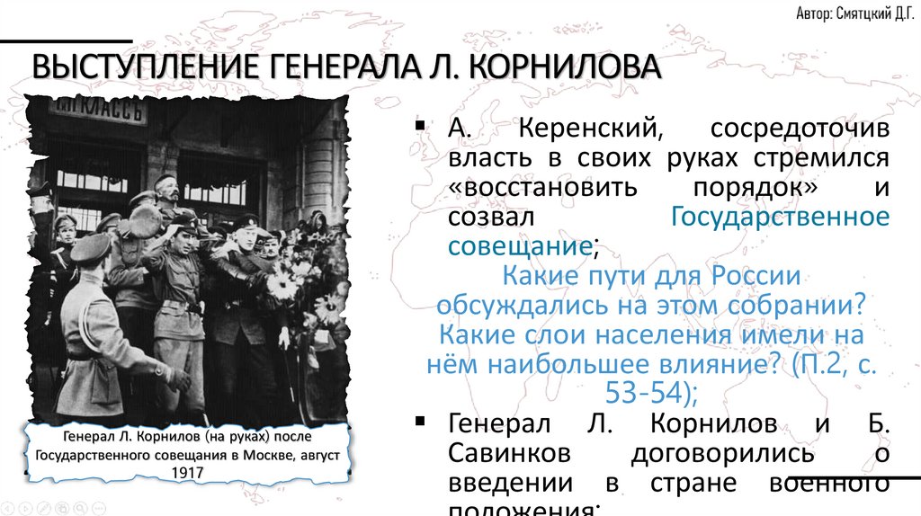 ВЫСТУПЛЕНИЕ ГЕНЕРАЛА Л. КОРНИЛОВАА.