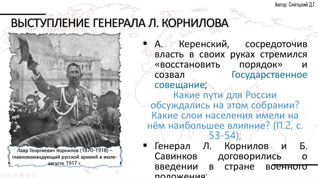 ВЫСТУПЛЕНИЕ ГЕНЕРАЛА Л. КОРНИЛОВАЛавр Георгиевич Корнилов (1870-1918) –