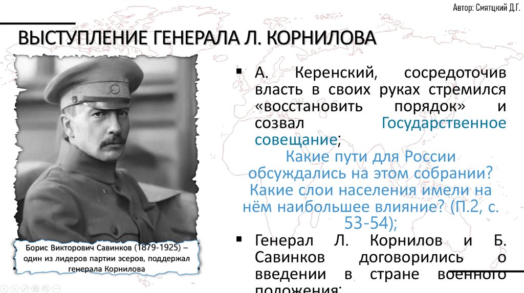 ВЫСТУПЛЕНИЕ ГЕНЕРАЛА Л. КОРНИЛОВАБорис Викторович Савинков (1879-1925) –