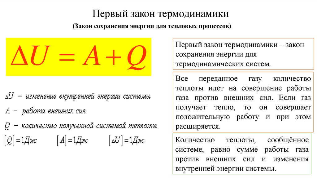 Первый закон термодинамики(Закон сохранения энергии для тепловых процессов)