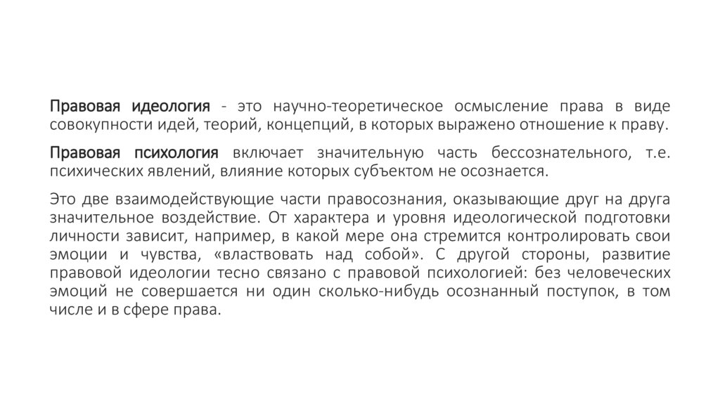 правовой идеологии тесно связано с правовой психологией: без человеческих