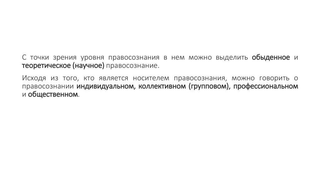 правосознании индивидуальном, коллективном (групповом), профессиональном