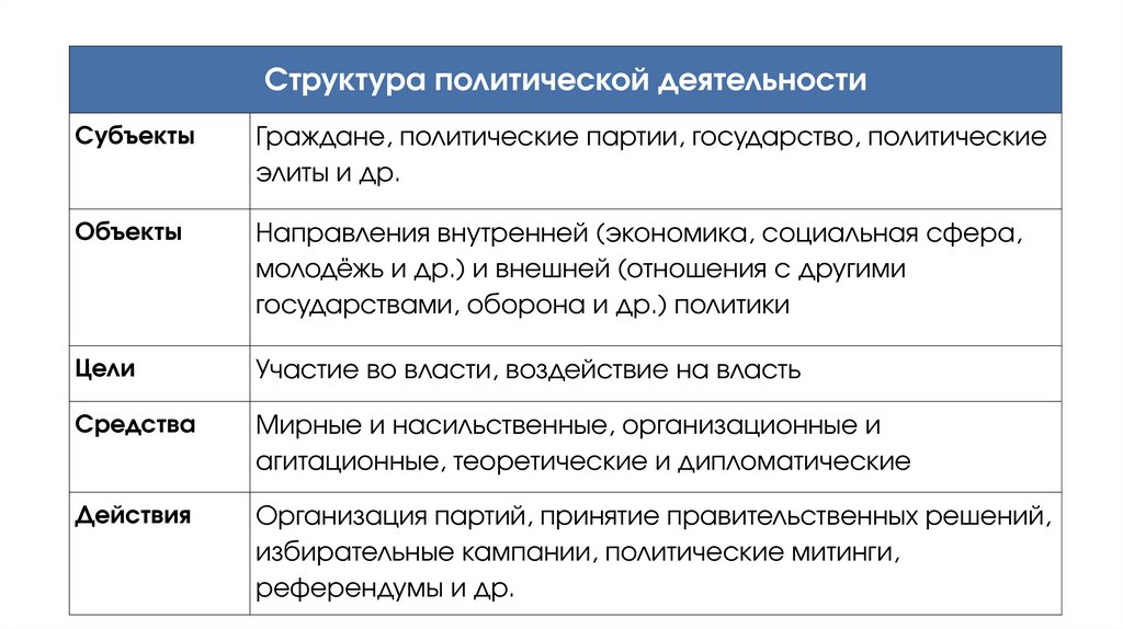 Структура политической деятельностиСубъекты