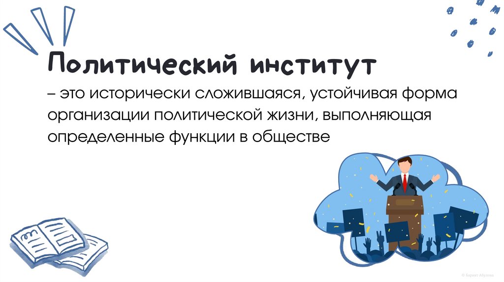 Политический институт– это исторически сложившаяся, устойчивая форма