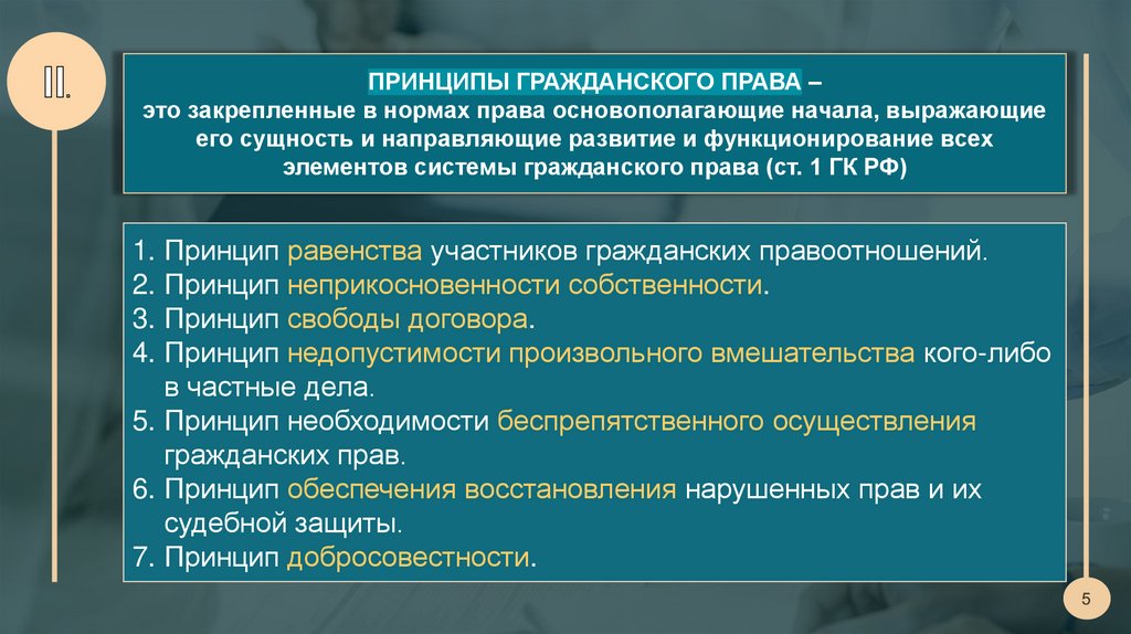ПРИНЦИПЫ ГРАЖДАНСКОГО ПРАВА –это закрепленные в нормах права основополагающие начала, выражающие