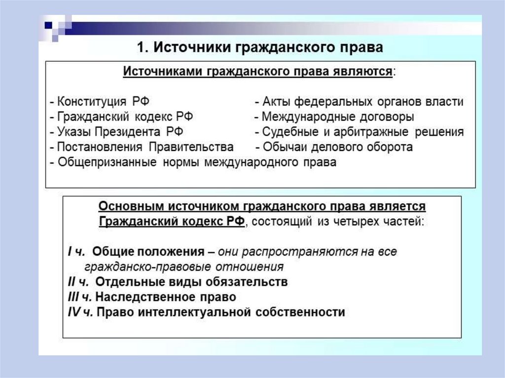 Нормы гражданского права выражены в различных правовых формах,которые в юридической науке получили название «источники гражданского