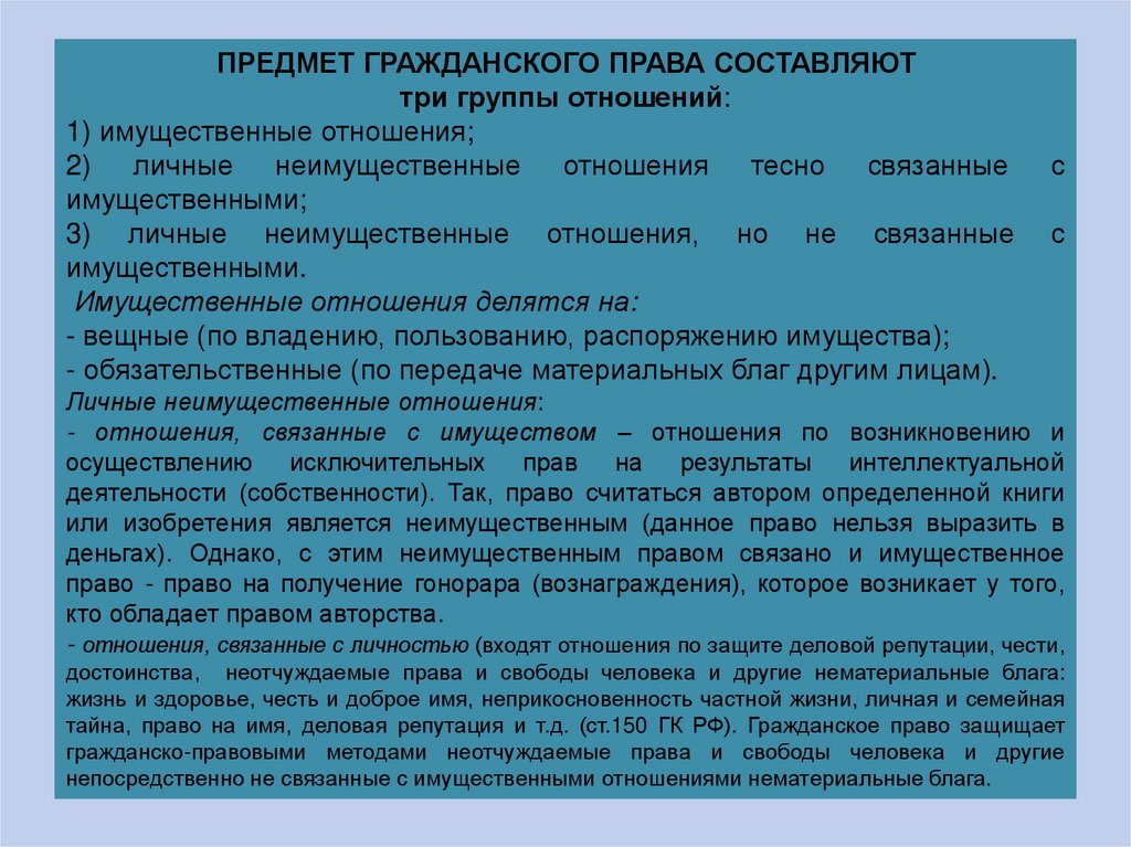 отношения, все, что связано с рынком товаров и услуг, имущественными отношениями граждан и юридических лиц. Можно ли, например, продать или подарить вещь, находящуюся в