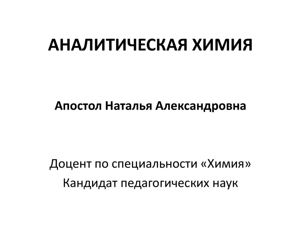 АНАЛИТИЧЕСКАЯ ХИМИЯАпостол Наталья Александровна