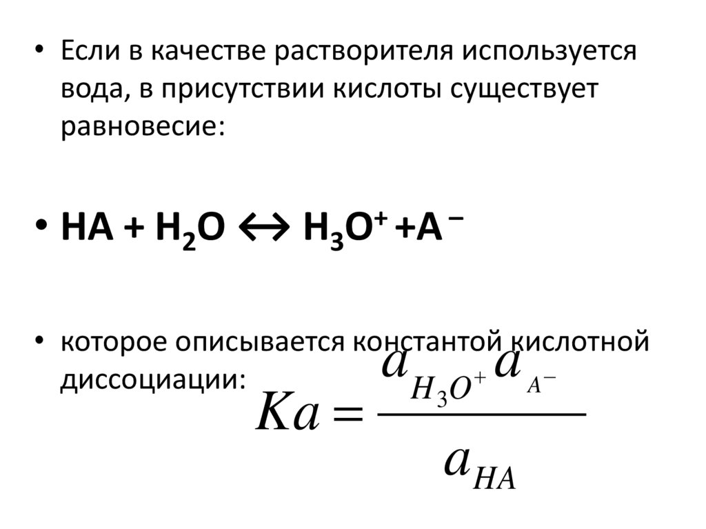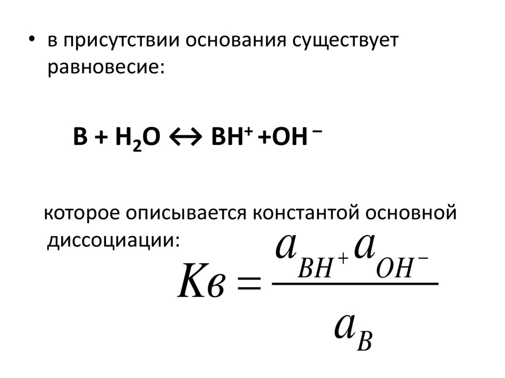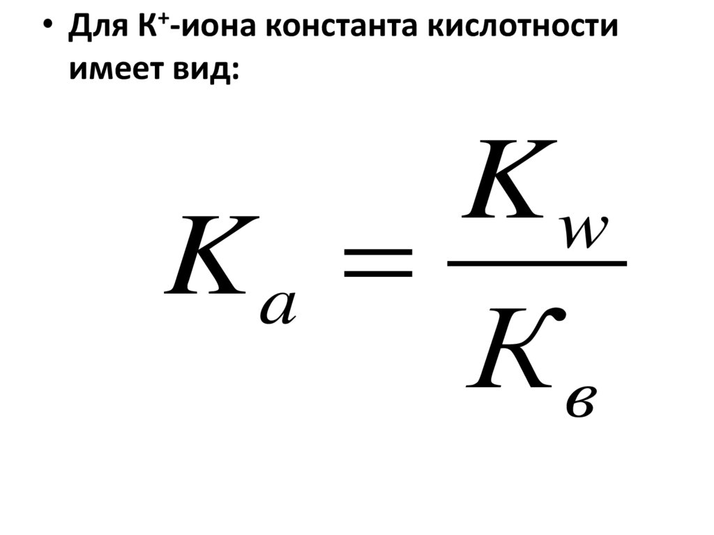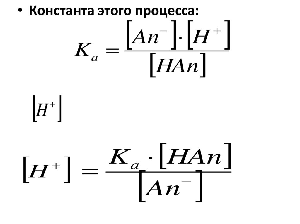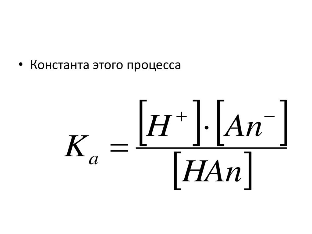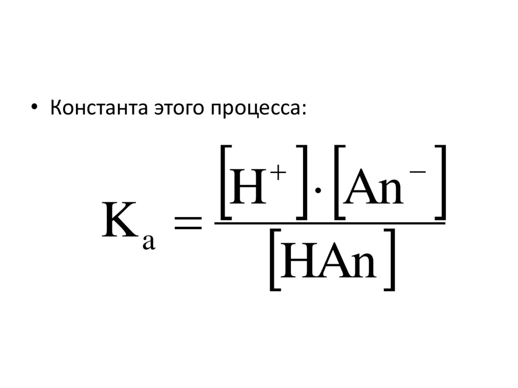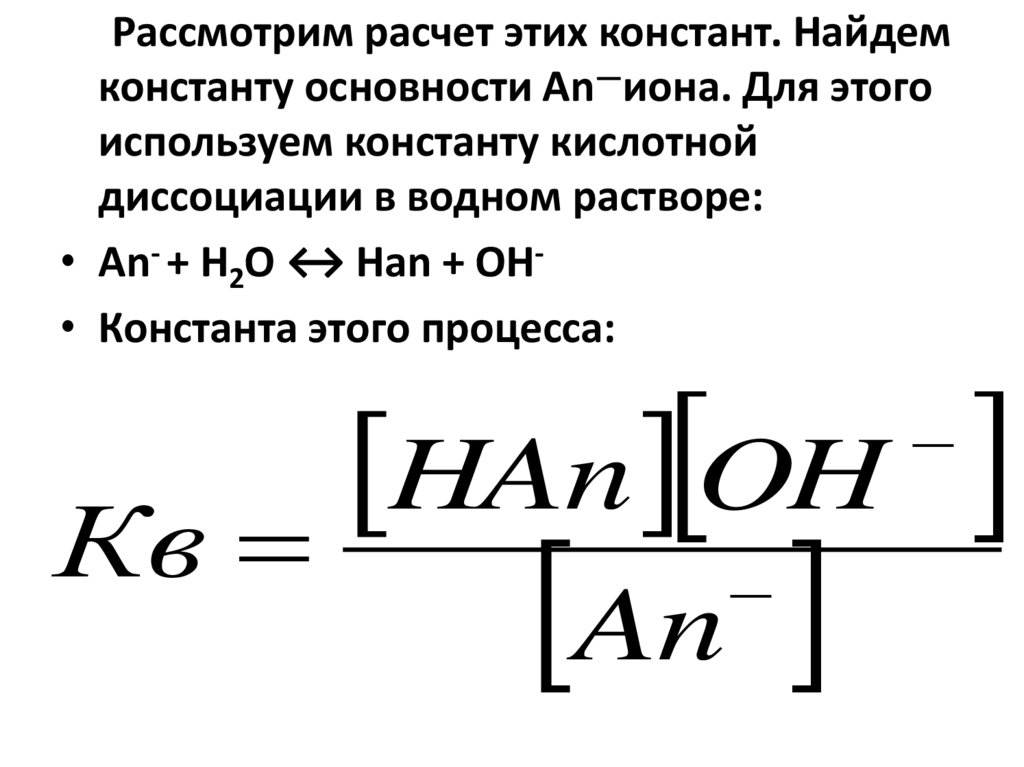 • An- + H2O ↔ Han + OH• Константа этого процесса: