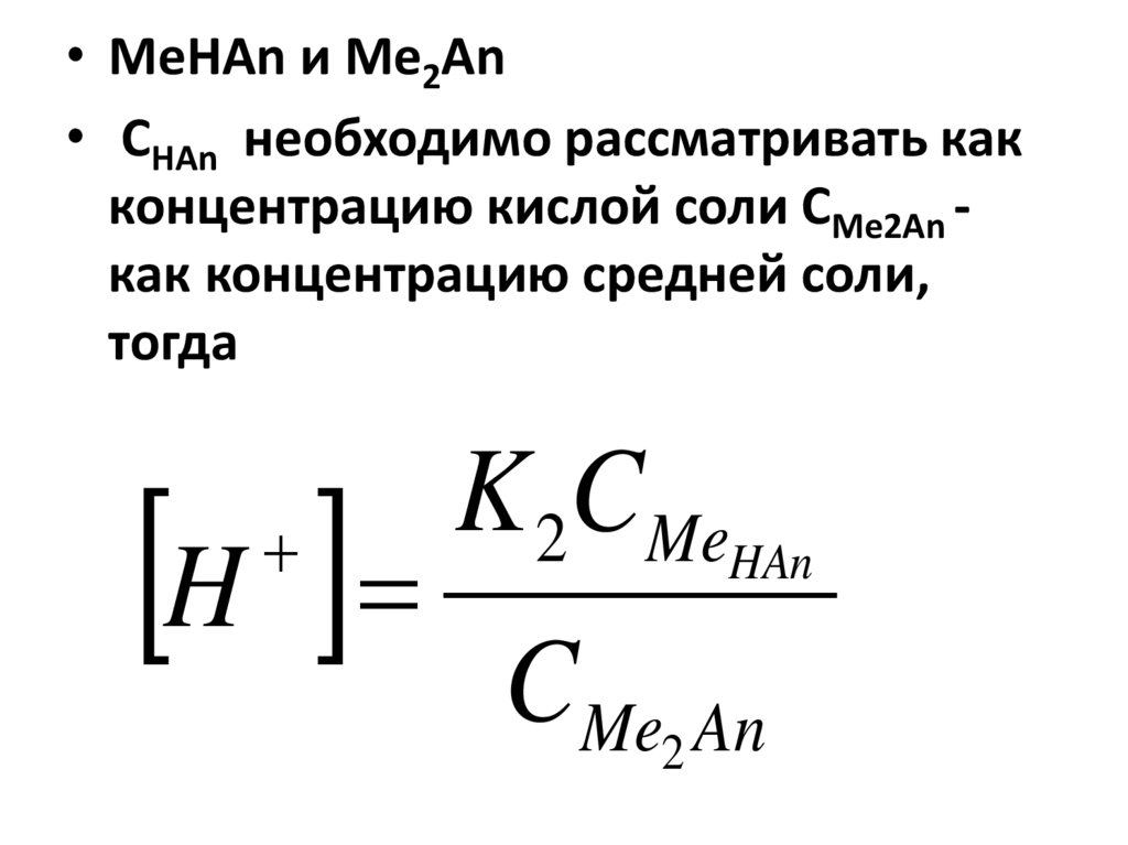 концентрацию кислой соли СМе2Аn как концентрацию средней соли,