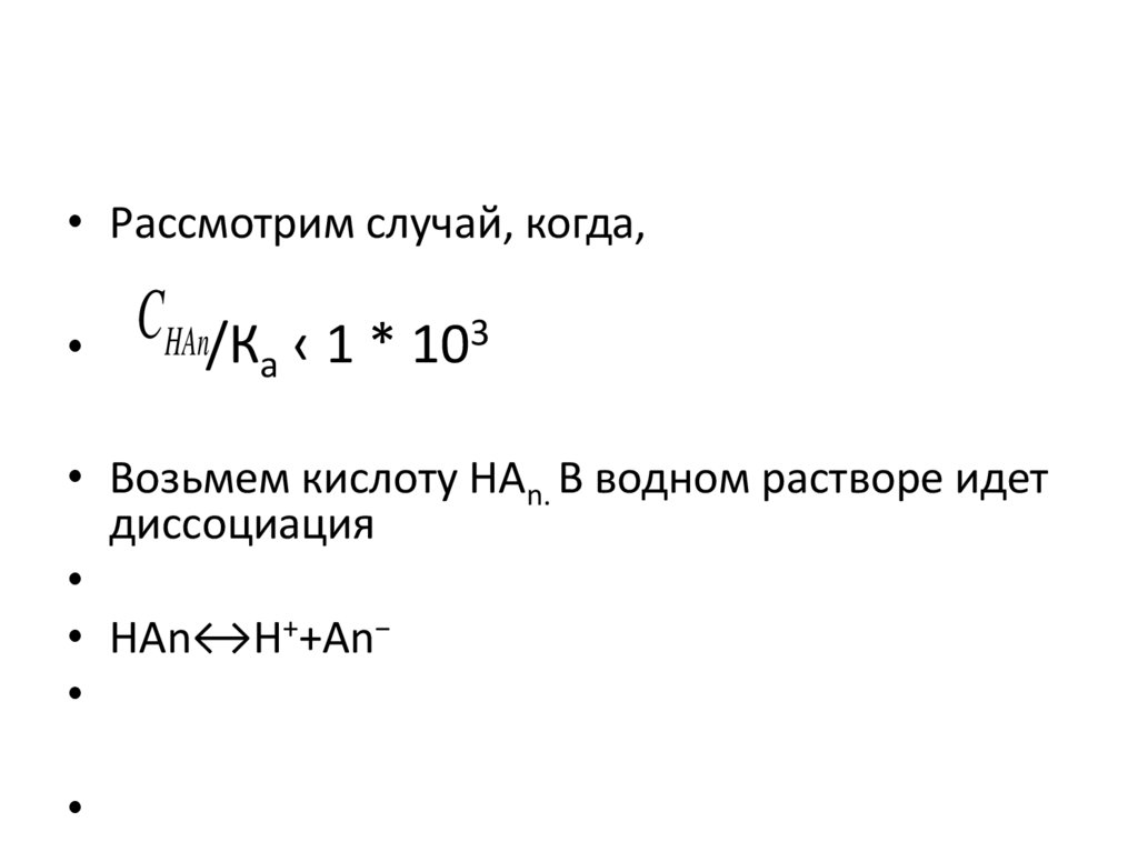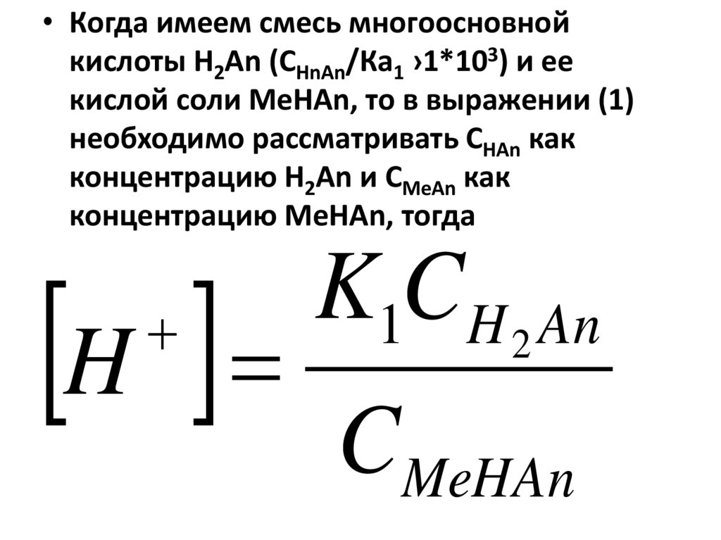 • Когда имеем смесь многоосновнойкислоты Н2Аn (СНnAn/Ка1 ›1*103) и ее