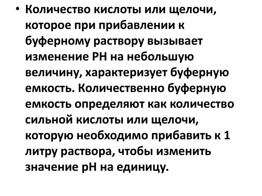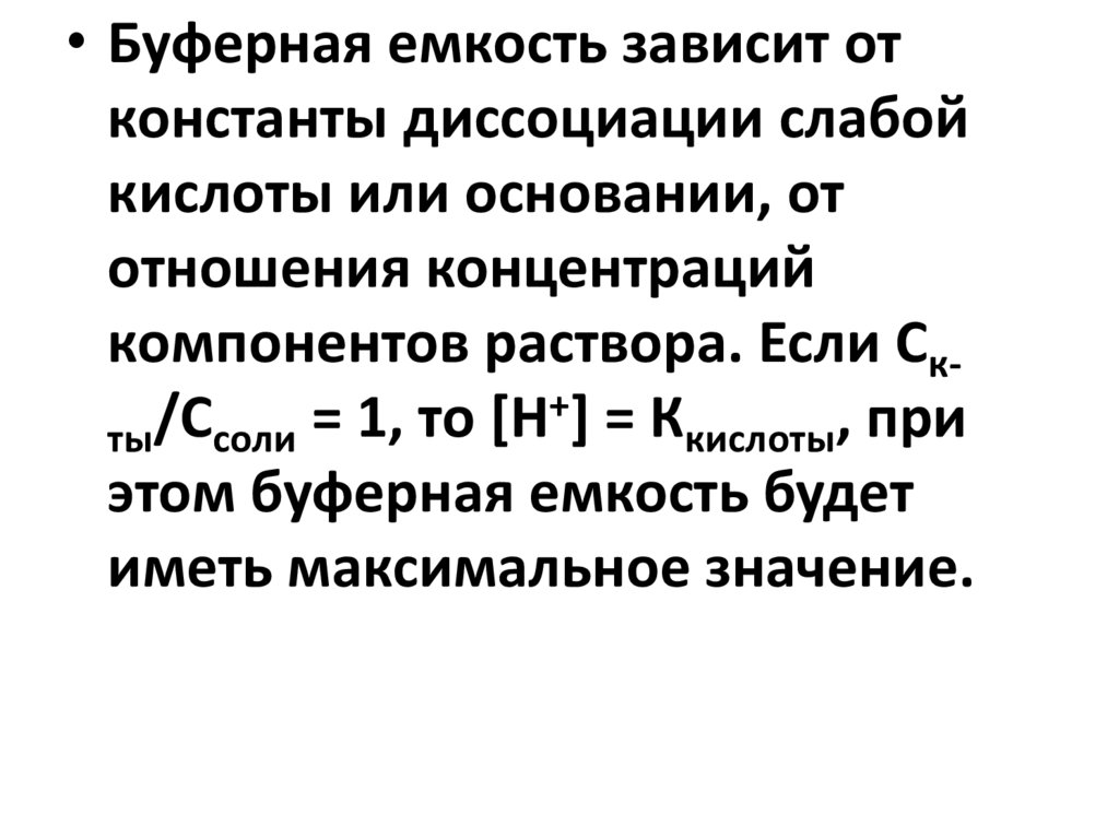 • Буферная емкость зависит отконстанты диссоциации слабой