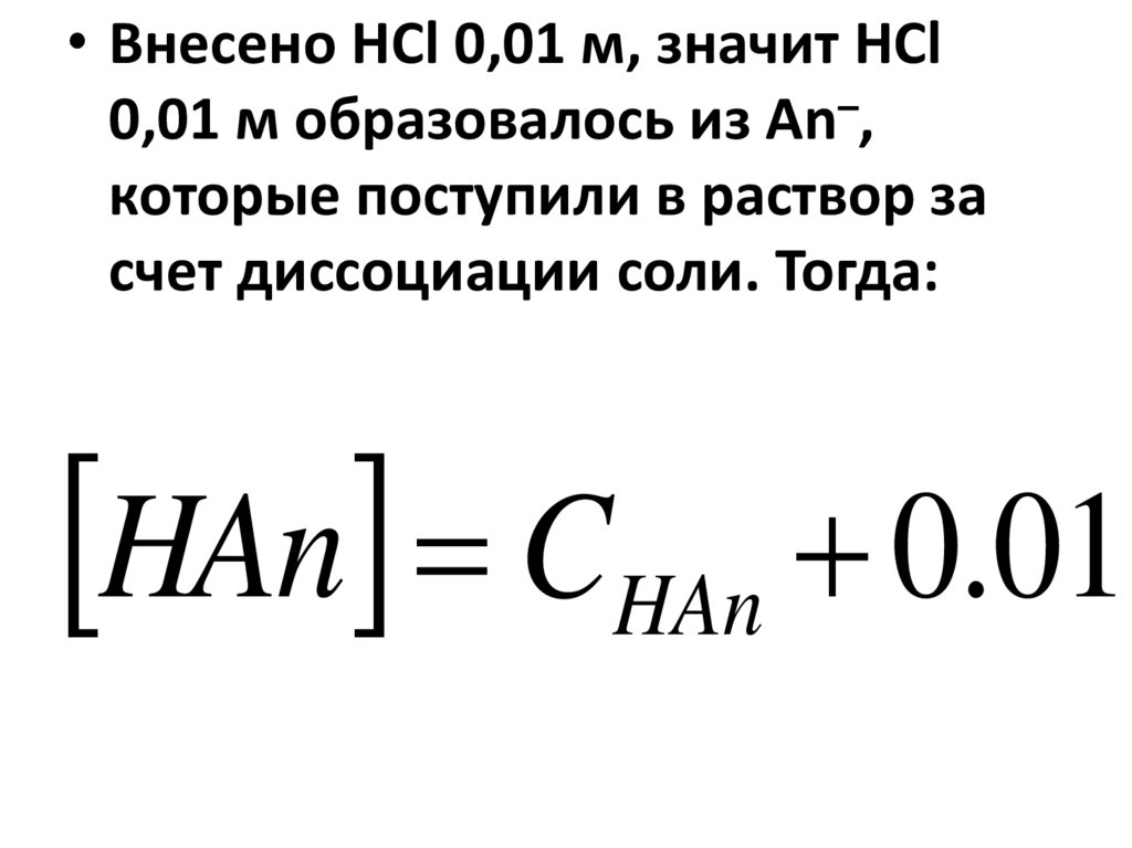 • Внесено НСl 0,01 м, значит НСl0,01 м образовалось из Аn–,