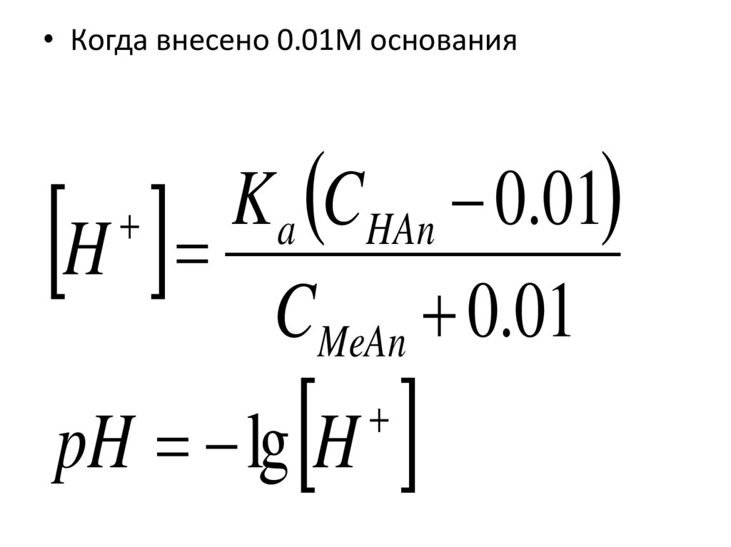 • Когда внесено 0.01М основанияK a CHAn 0.01