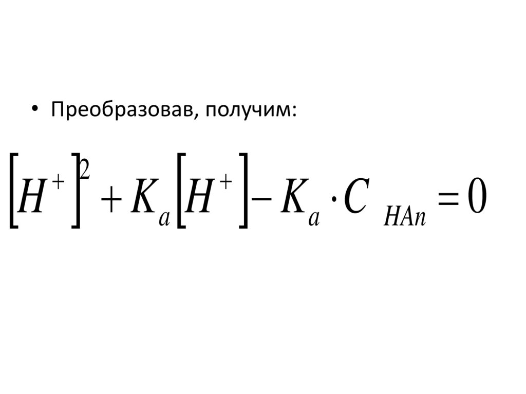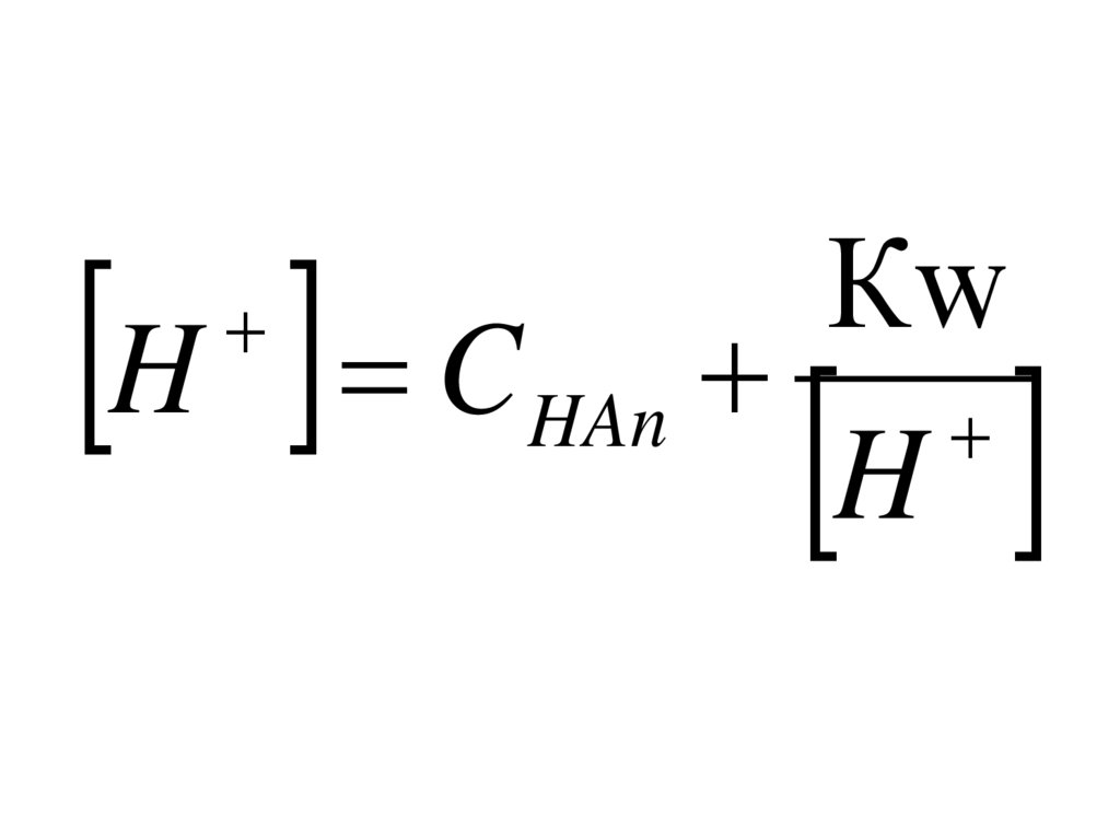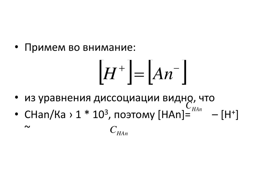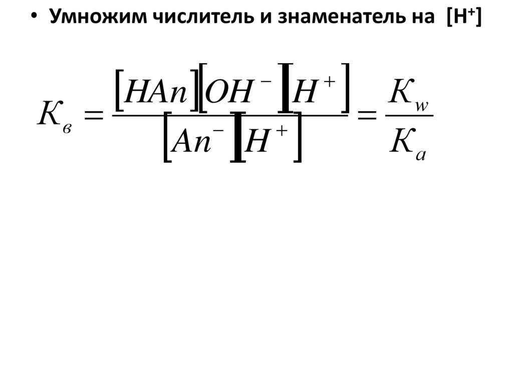 • Умножим числитель и знаменатель на [Н+]HAn OH H К w