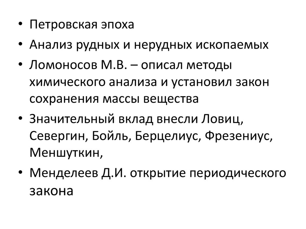 • Петровская эпоха• Анализ рудных и нерудных ископаемых