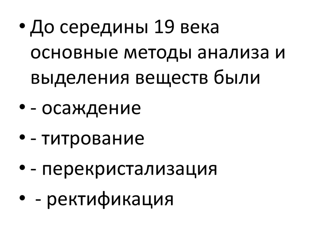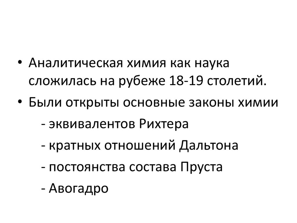 • Аналитическая химия как наукасложилась на рубеже 18-19 столетий.