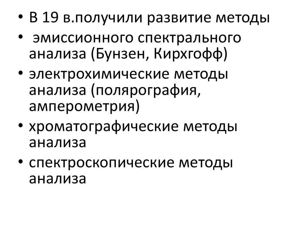 • В 19 в.получили развитие методы• эмиссионного спектрального