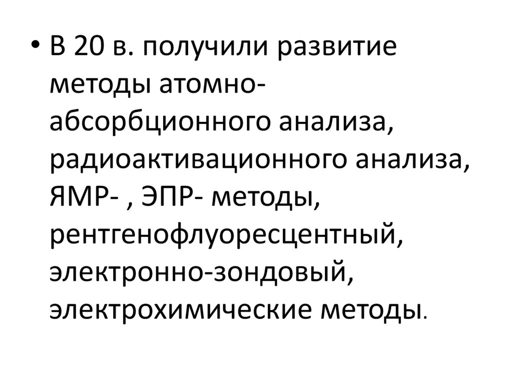 • В 20 в. получили развитиеметоды атомноабсорбционного анализа,