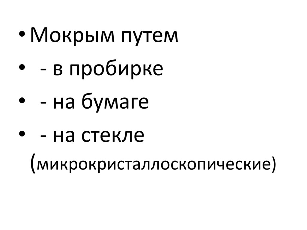 • Аналитическая реакциядает изменение в системе, которое регистрируется визуально или с помощью прибора