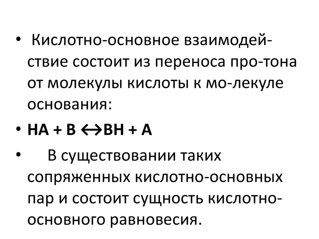 • Согласно протолитической теории анионыслабых кислоты относятся к основаниям,