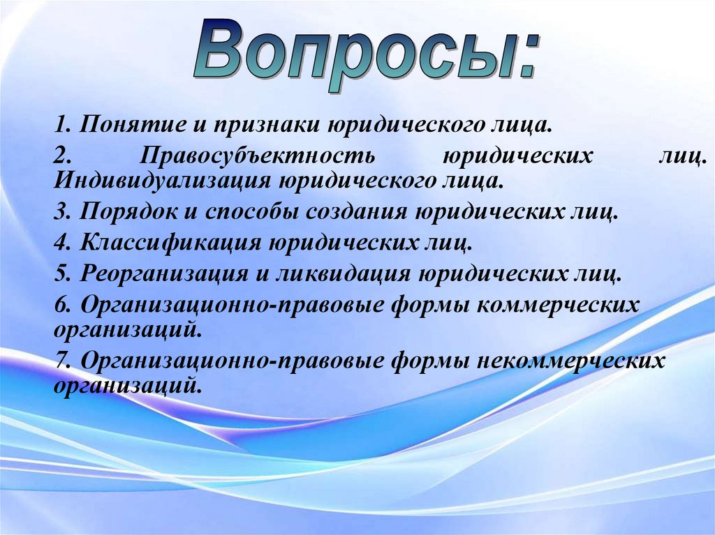 Юридические лица. Лекция Презентация