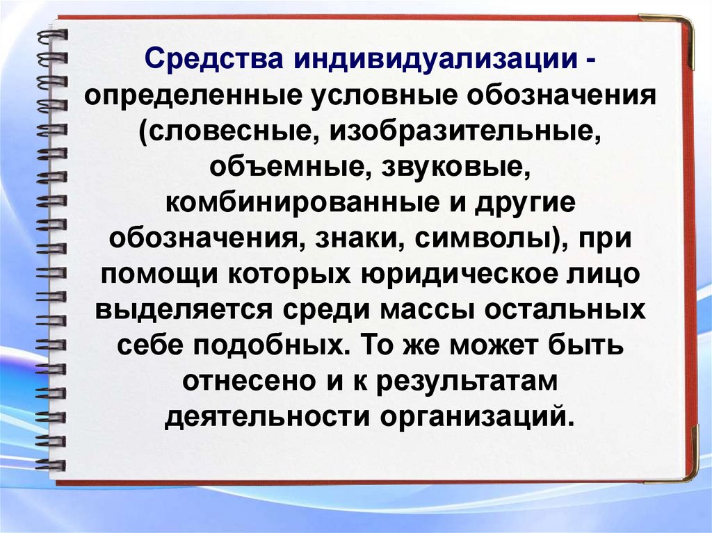 Индивидуализация юридического лица.