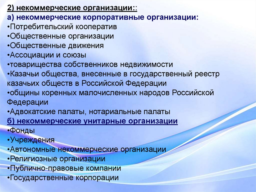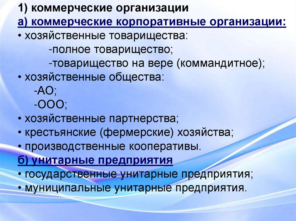 организаций, как унитарные и корпоративные