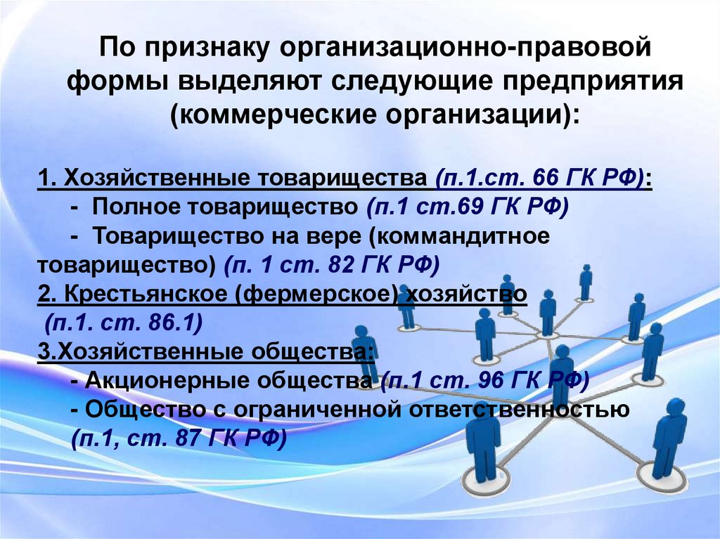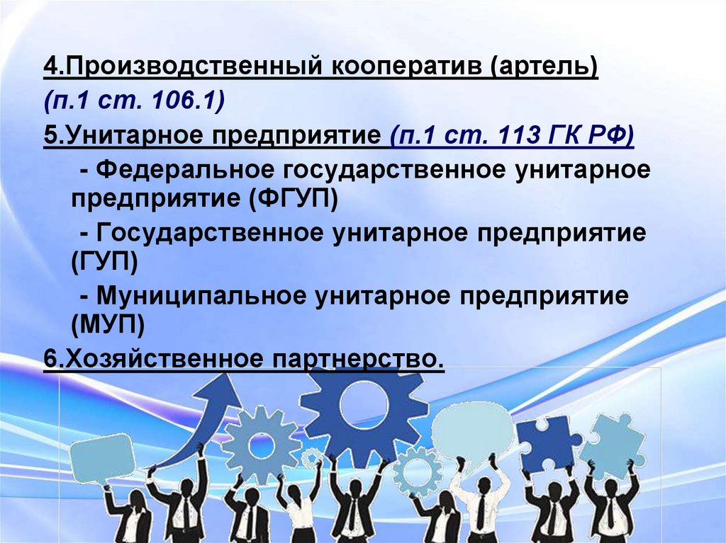 1. Хозяйственные товарищества (п.1.ст. 66 ГК РФ):