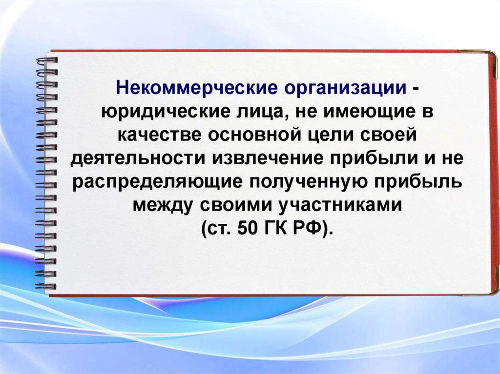 Некоммерческие организации юридические лица, не имеющие вкачестве основной цели своей