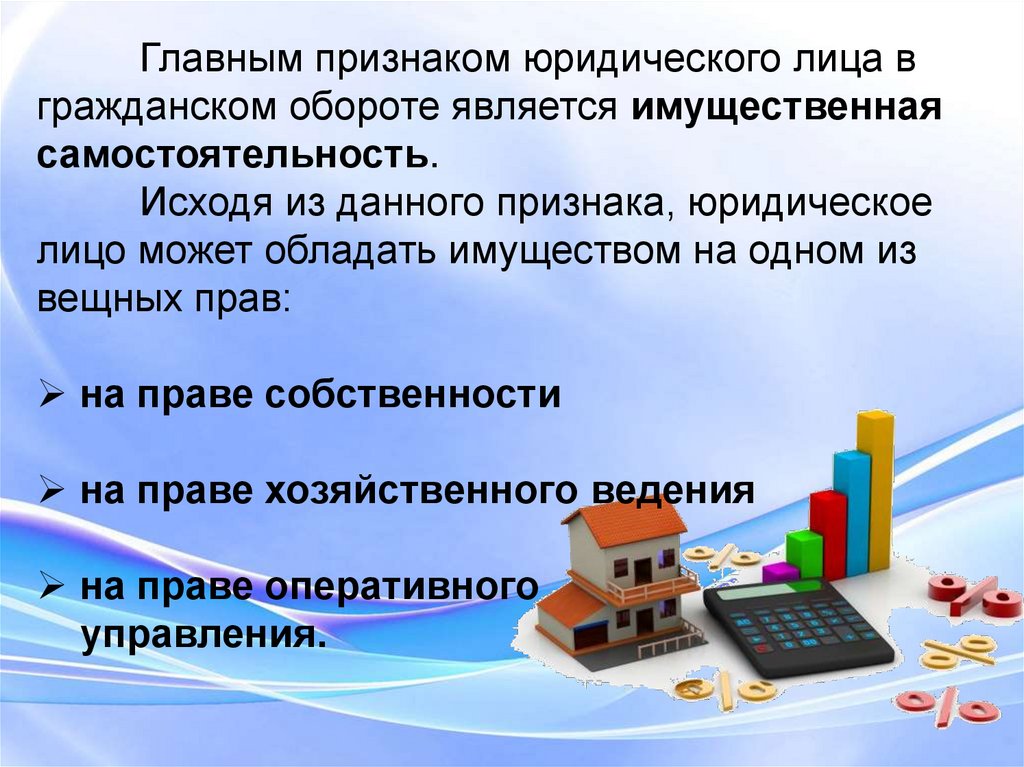 Главным признаком юридического лица вгражданском обороте является имущественная