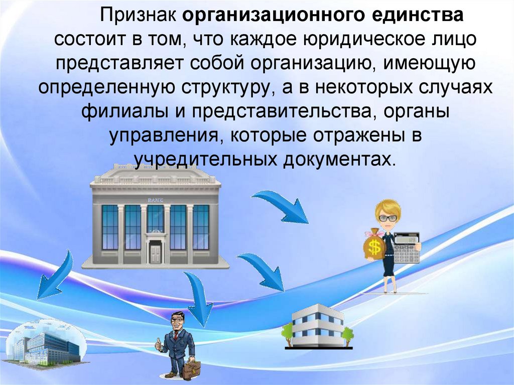Признак организационного единствасостоит в том, что каждое юридическое лицо